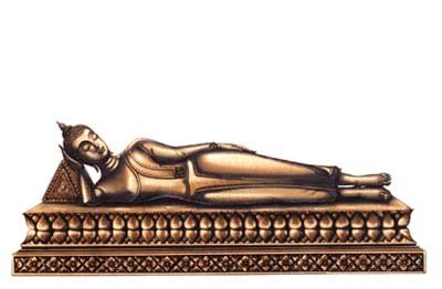 ลักษณะพระพุทธรูป : พระพุทธรูปอยู่ในพระอริยาบถนอนตะแคงขวา พระบาททั้งสองข้างซ้อนทับเสมอกัน พระหัตถ์ซ้ายทาบไปตามพระวรกาย พระหัตถ์ขวาตั้งขึ้นรับพระเศียรและมีพระเขนย (หมอน) รองรับ บางแบบพระเขนยวางอยู่ใต้พระกัจฉะ (รักแร้)